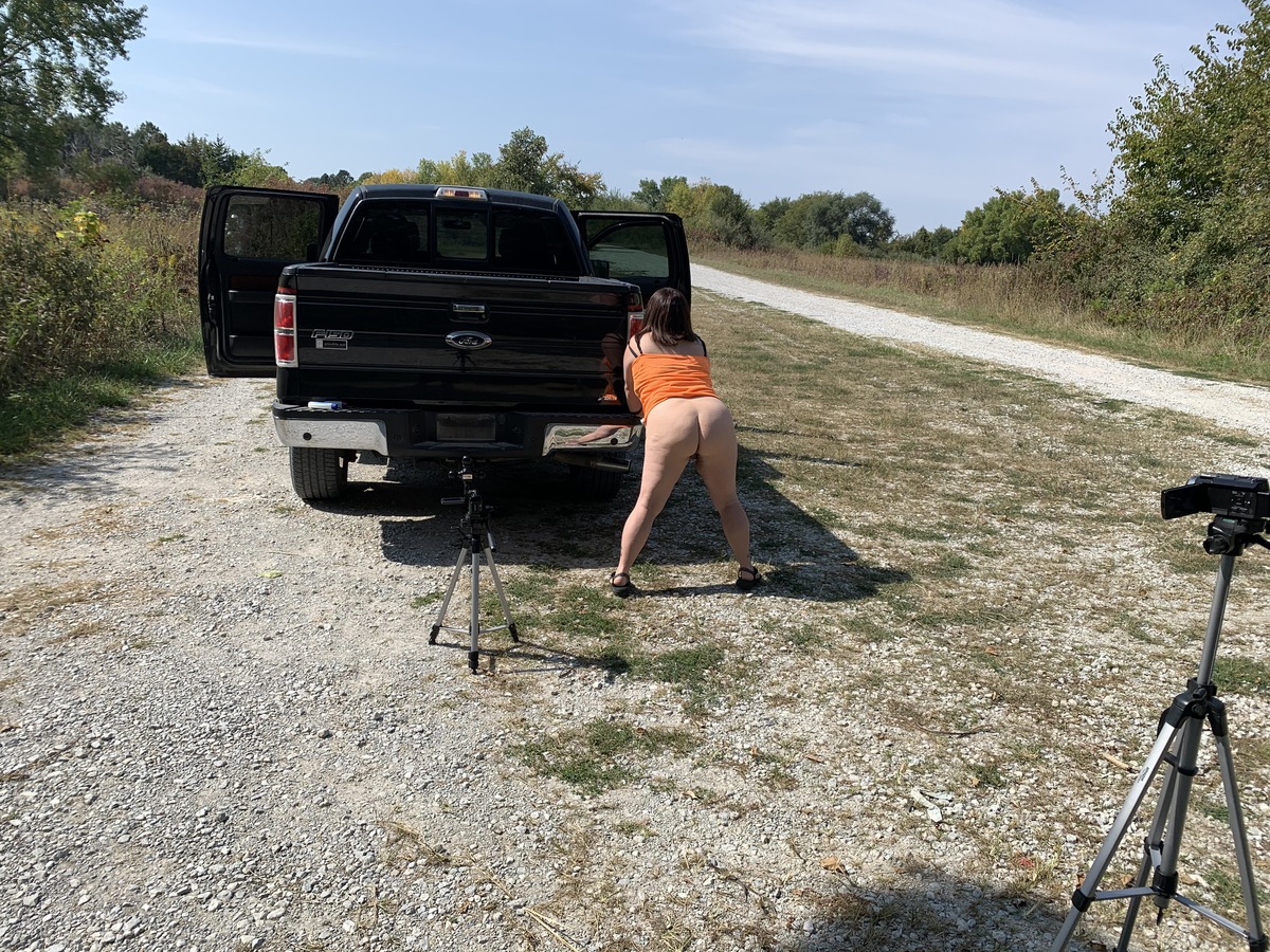 I had such a fun time getting naked outdoors, in public, almost getting caught. Even better was getting my face plastered in cum and the best was stretching out my fat pussy on that trailer hitch.